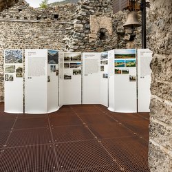 Kurator Dr. Martin Kofler führt durch diesjährige Sonderausstellung auf dem Dach der St. Laurentiuskapelle auf Burg Heinfels.