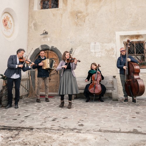 Wenn 'Di Vógaiga' aufspielen, also vorgeigen, dann klingt das nicht nur vertraut und normal. Zuweilen wecken die kreativen Musiker sogar den Eindruck, als würden sie ihren Auftritt "vergeigen", was jedoch durchaus beabsichtigt ist, denn sie wollen überraschen und staunen machen. Alpenländische Volksmusik wird von der Gruppe mit unterschiedlichsten Stilelementen verwoben - ein Spiel mit den eigenen Wurzeln. Dabei treffen 5 Musiker*innen aus unterschiedlichen Genres und facettenreichen Charakteren zusammen und lassen die Musik stimmungsvoll in allen Nuancen erklingen. Bei den Vógaiga treffen zusammen: ein Jazzschlagzeuger mit volksmusikalischen, traditionellen Wurzeln, der mit seinem Kontrabass einen elektrisierenden Groove serviert, ein ehemaliger Tischler, der nun die Nägel mit den Knöpfen seiner Steirischen ausgetauscht hat und mit seinem Handwerk sowohl eine stabile Grundlage als auch ästhetisch Feines hobelt, eine Mentaltrainerin, die mit ihrer Liebe zu ausdrucksstarken Bildern und Gefühlen so manche Klanggemälde mit ihrem Cello und ihrer Harfe zaubert, eine Musiktherapeutin, die mit der 2. Geige im Team wunderbar ihre soziale Ader zum Vorschein bringt und tiefsinnige Klänge in der Gruppe verwebt, ein Dirigent und Tontechniker, der mit der 1. Geige die Grundführung mit Bravour meistert und ein Gesamtkunstwerk erschafft